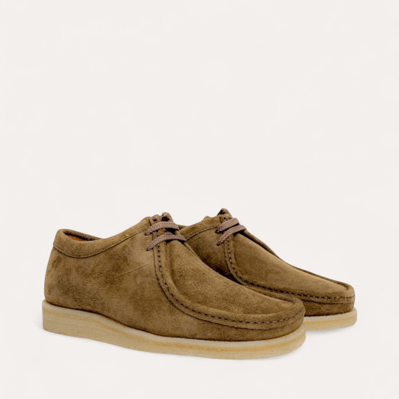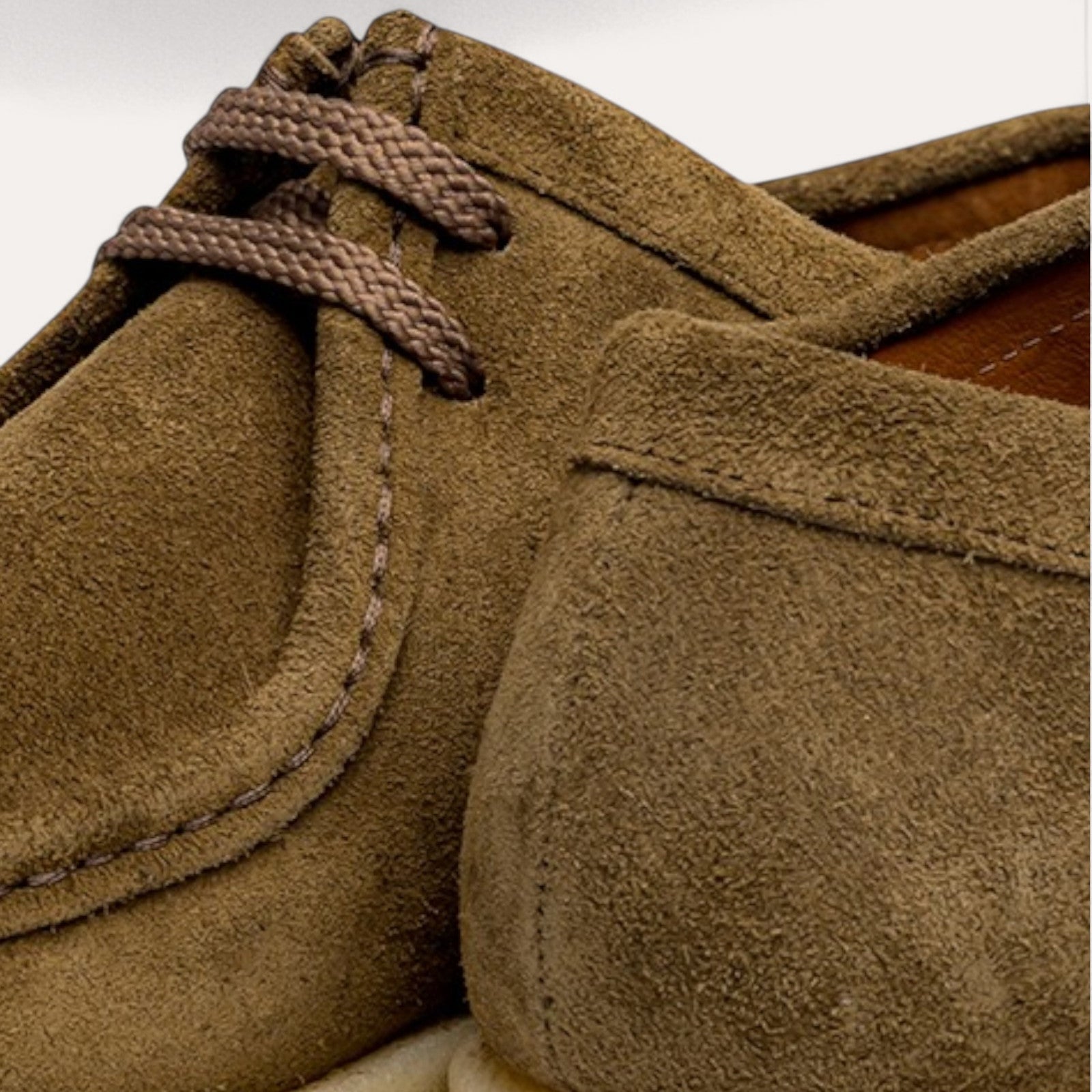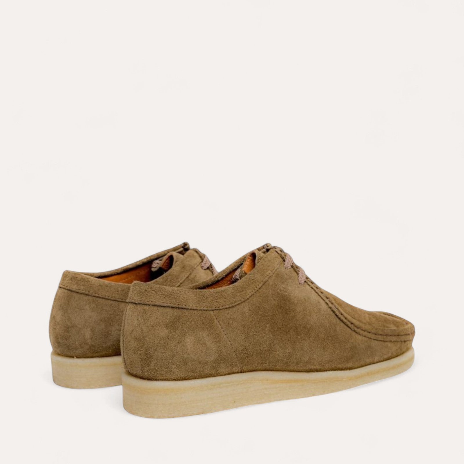 Semelle Crêpe Véritable : Seule la véritable Crêpe Plantation est utilisée pour la semelle. Cette gomme naturelle et souple offre un amorti unique, renforçant le look authentique et intemporel de cette chaussure de style Wallabee.