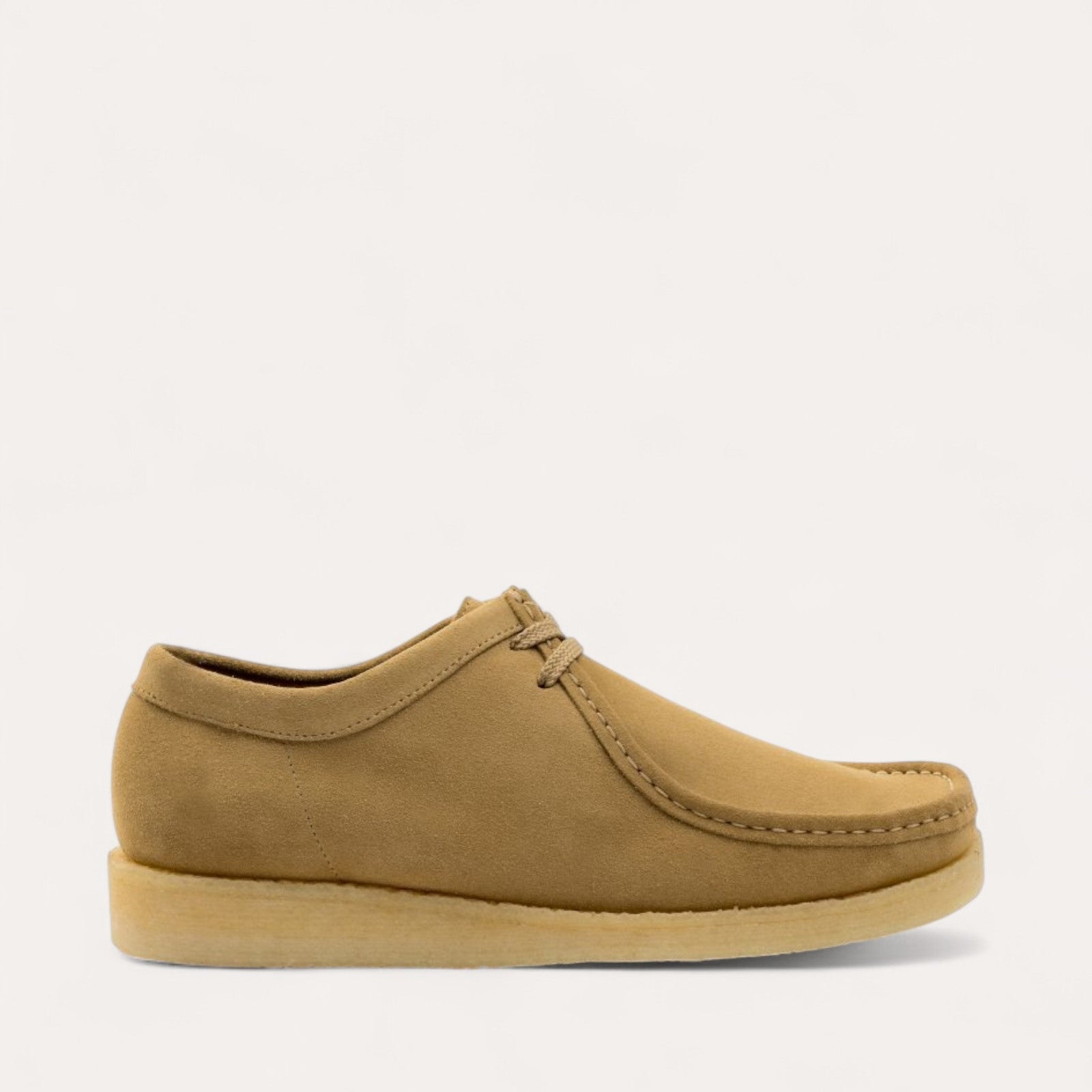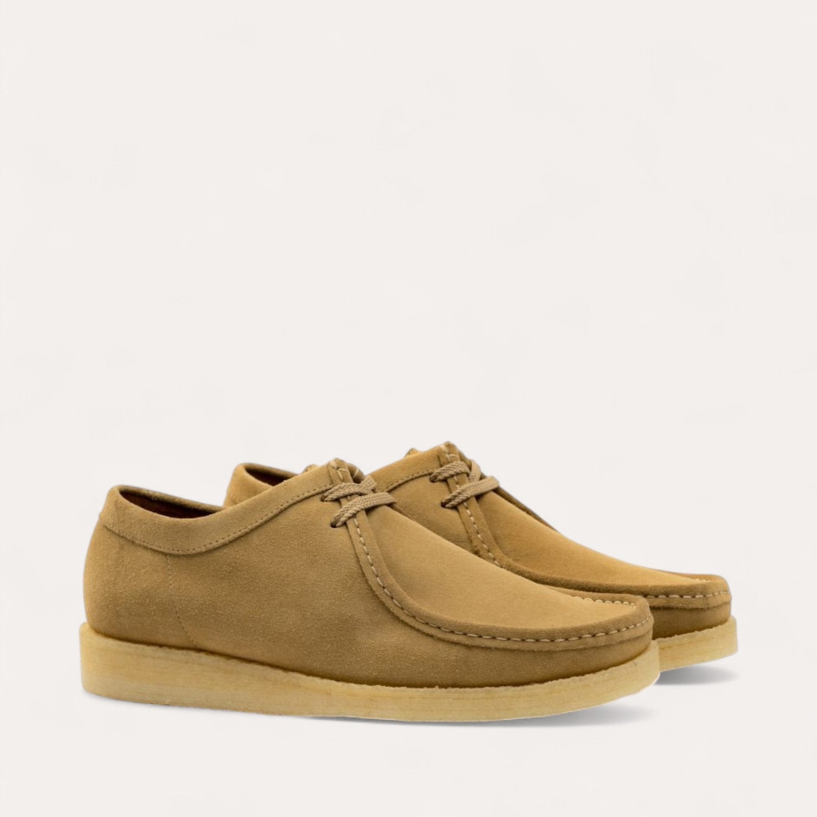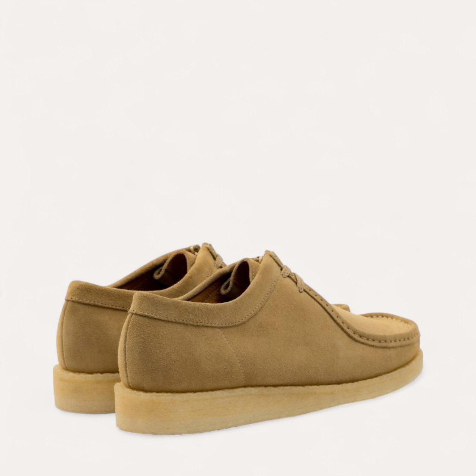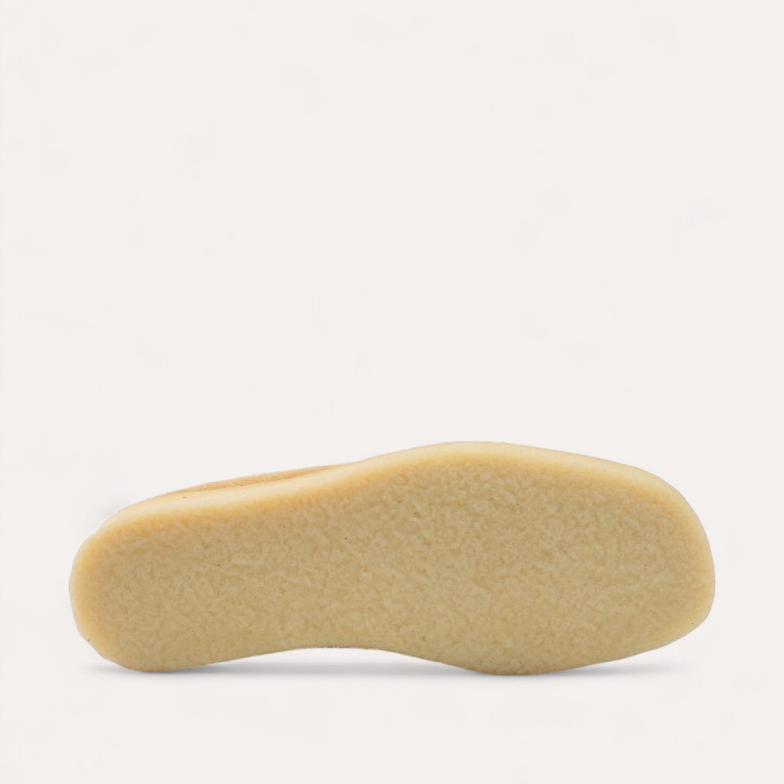 Semelle Crêpe Véritable : Seule la véritable Crêpe Plantation est utilisée pour la semelle. Cette gomme naturelle et souple offre un amorti unique, renforçant le look authentique et intemporel de cette chaussure de style Wallabee.