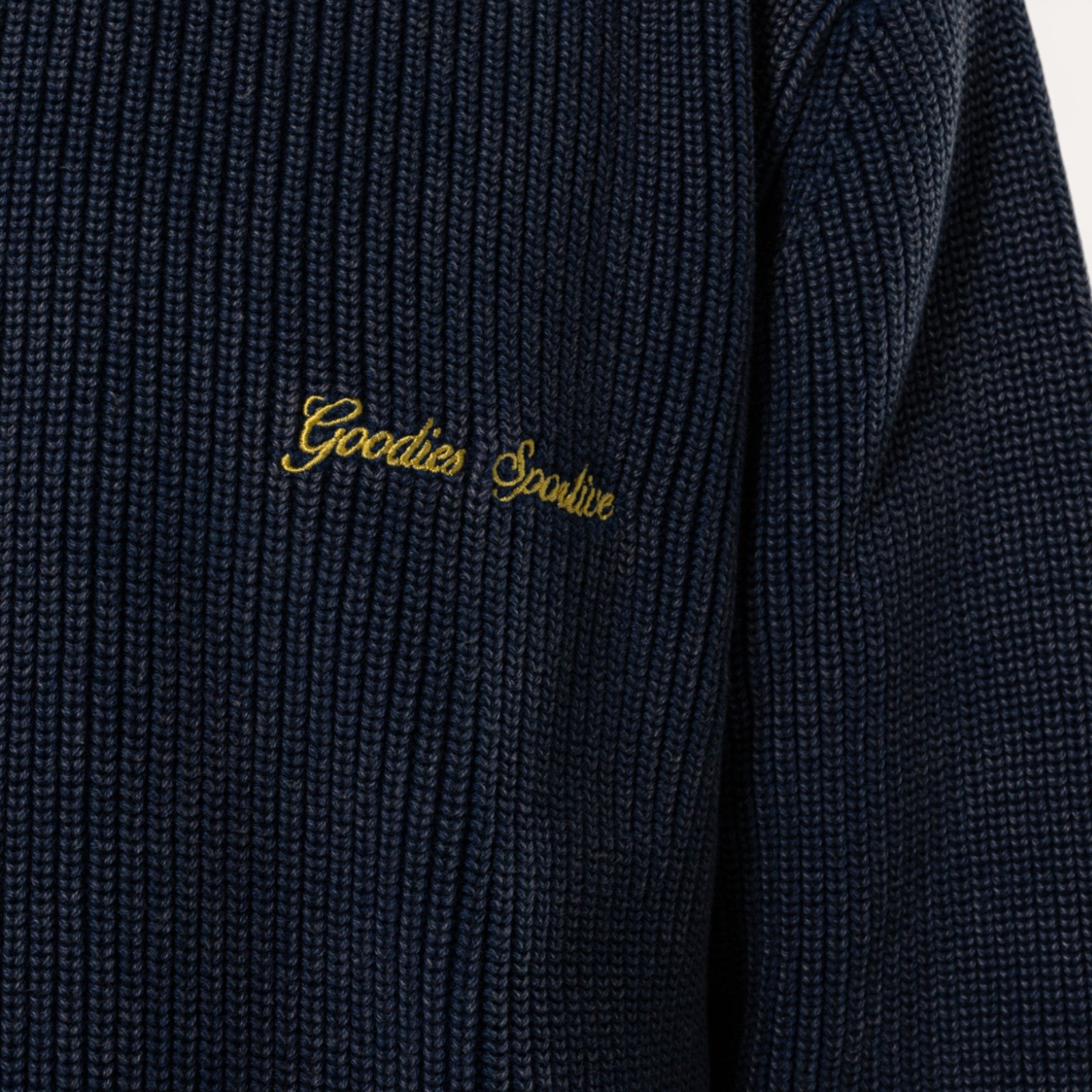 Le pull en maille Insignia de chez Goodies Sportive, une pièce intemporelle alliant confort et élégance discrète.