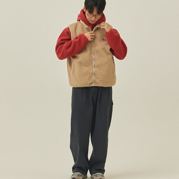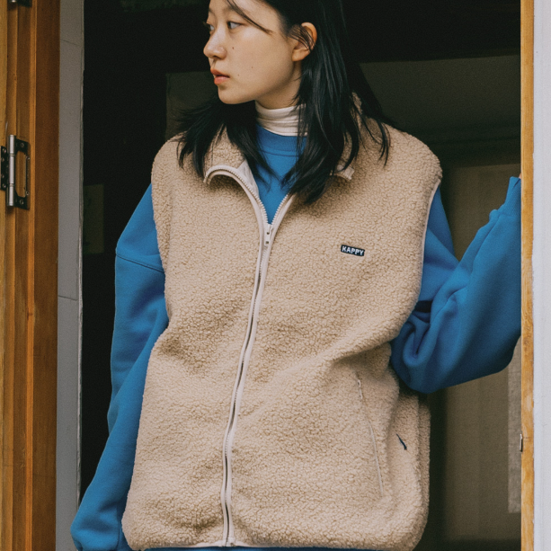 Ce gilet polaire de la marque coréenne Kappy Design allie une coupe impeccable à des détails soignés pour un confort optimal. Fait d'une polaire douce, dense et légère, il offre une sensation moelleuse sans l'encombrement habituel. Sa coupe légèrement ample garantit un confort maximal, que vous le portiez seul ou sous une veste.