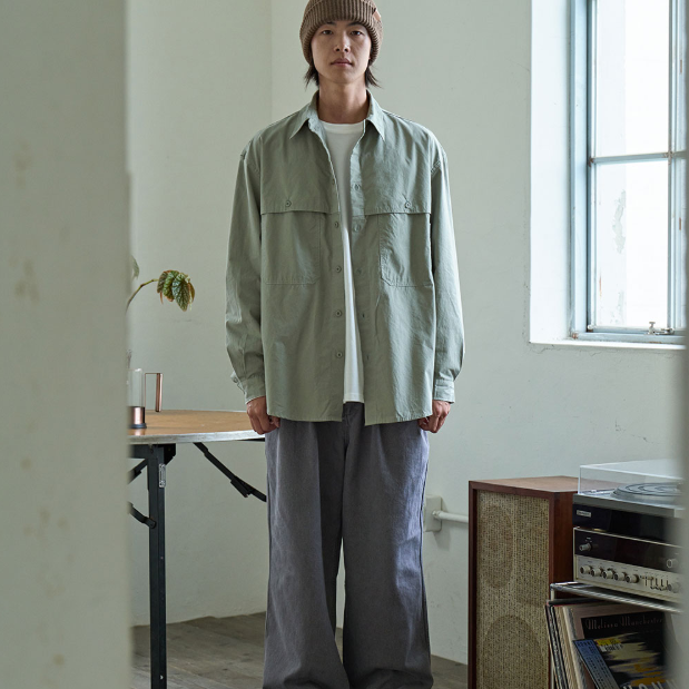 Confectionné à partir d'un tissu sergé 10 fils de haute qualité, il offre une durabilité et une robustesse à toute épreuve. Ce tissu a été traité avec une teinture cationique et un lavage biologique pour obtenir une texture unique au toucher et un aspect délicatement vintage. Un lavage supplémentaire après la production minimise le rétrécissement, garantissant que le vêtement conserve sa forme au fil du temps.