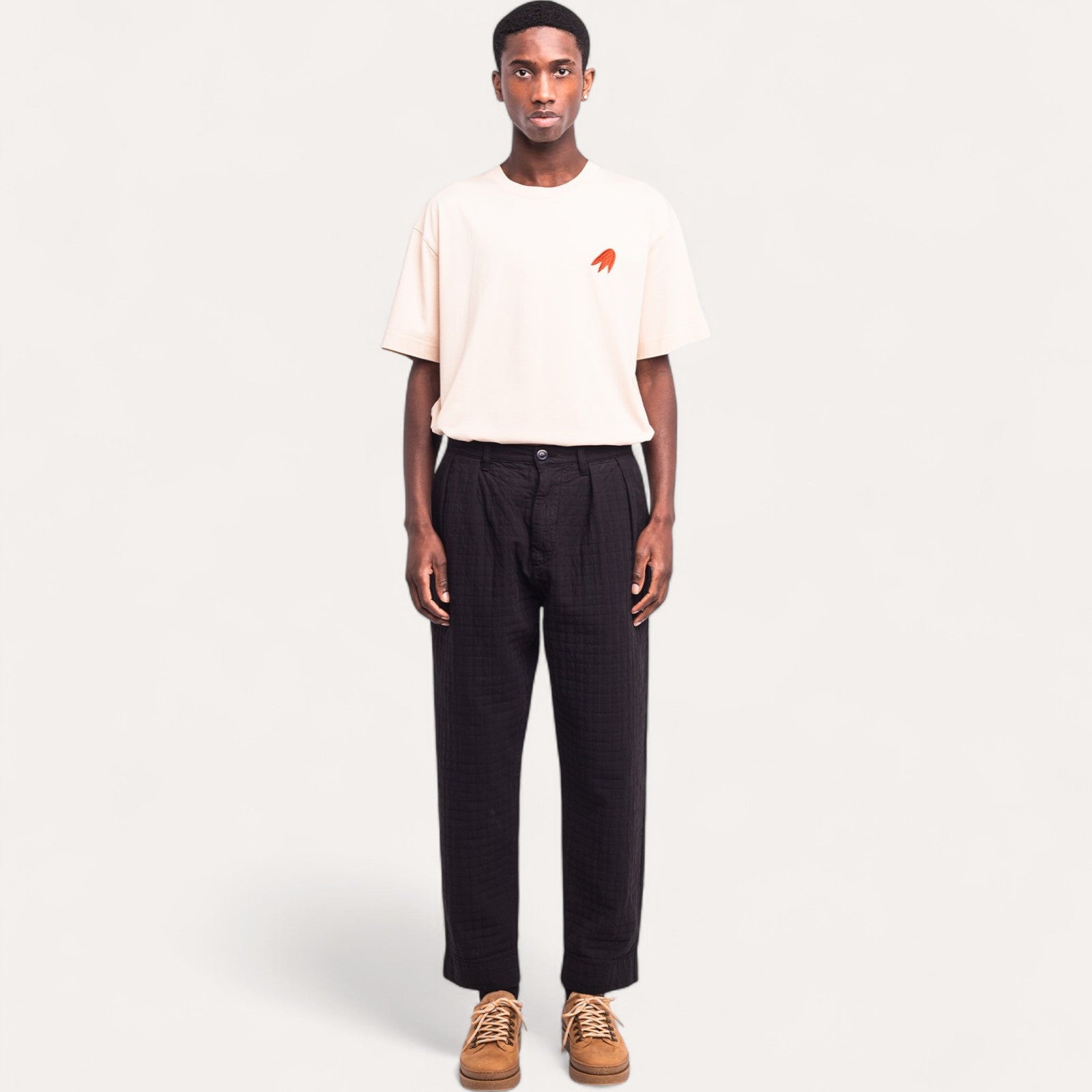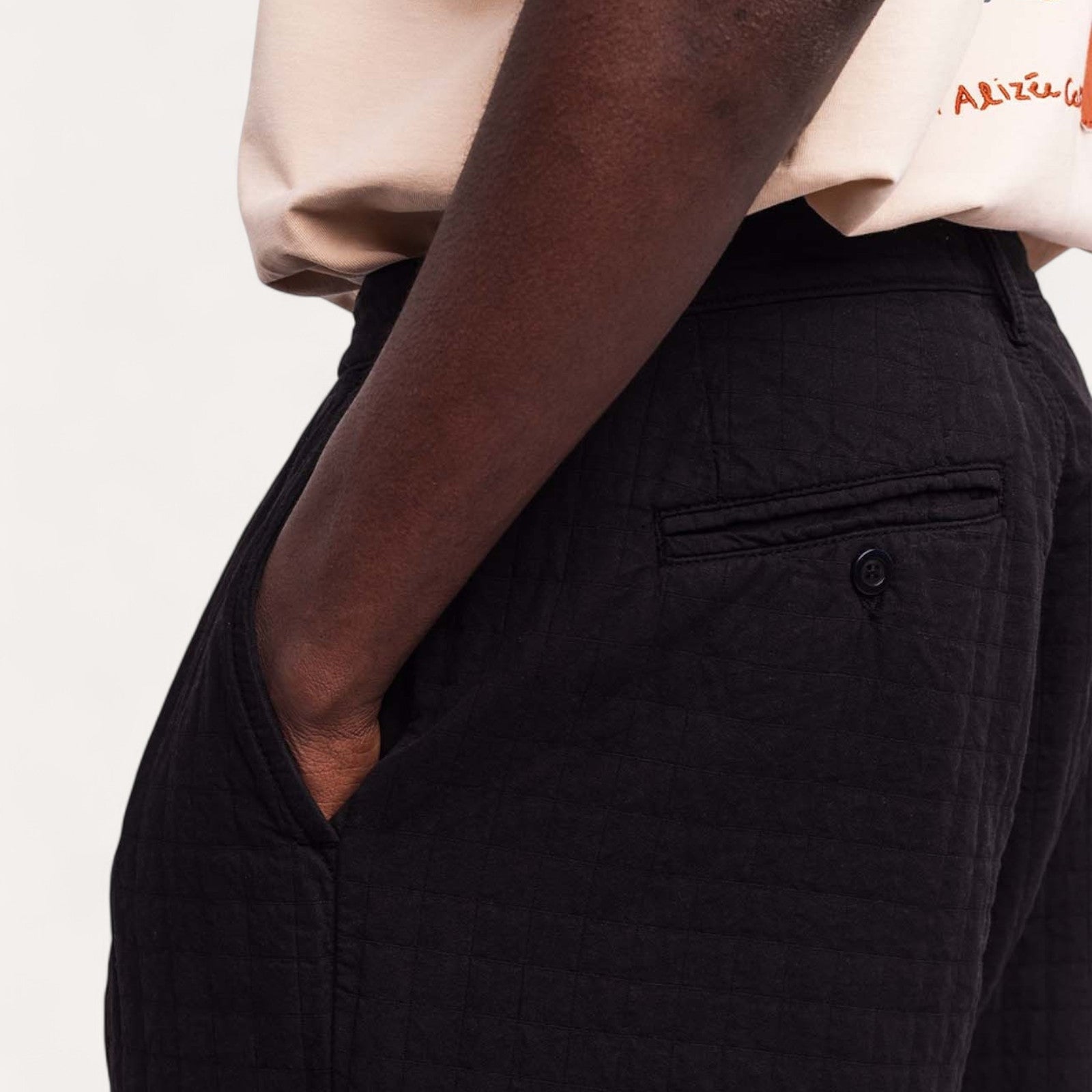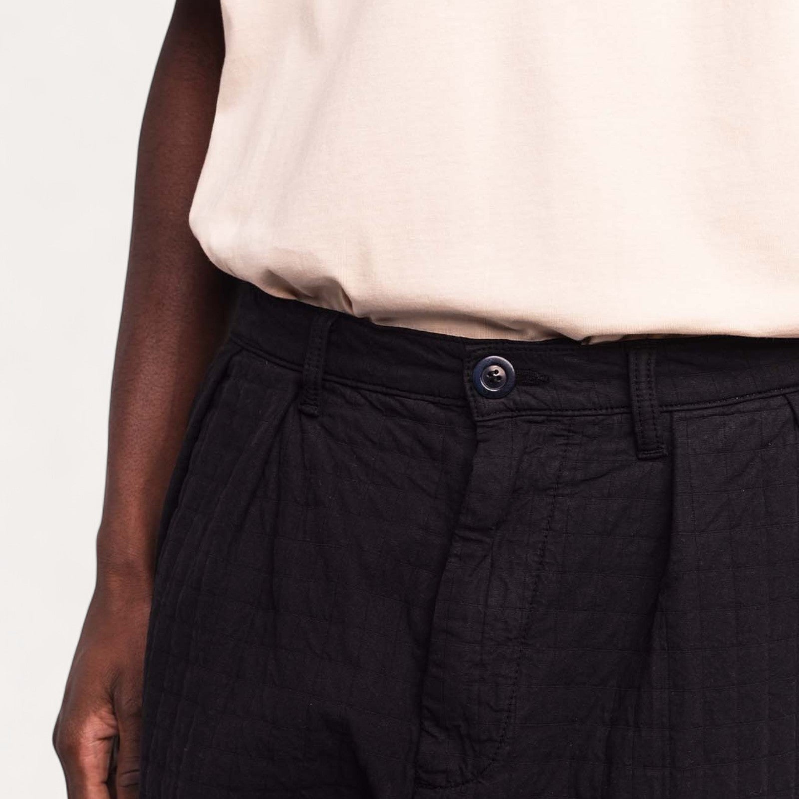 Polyvalence : La couleur noire permet de mettre en avant la texture matelassée, tout en restant une pièce élégante et facile à associer, inspirée à la fois du workwear et des lignes épurées japonaises.
