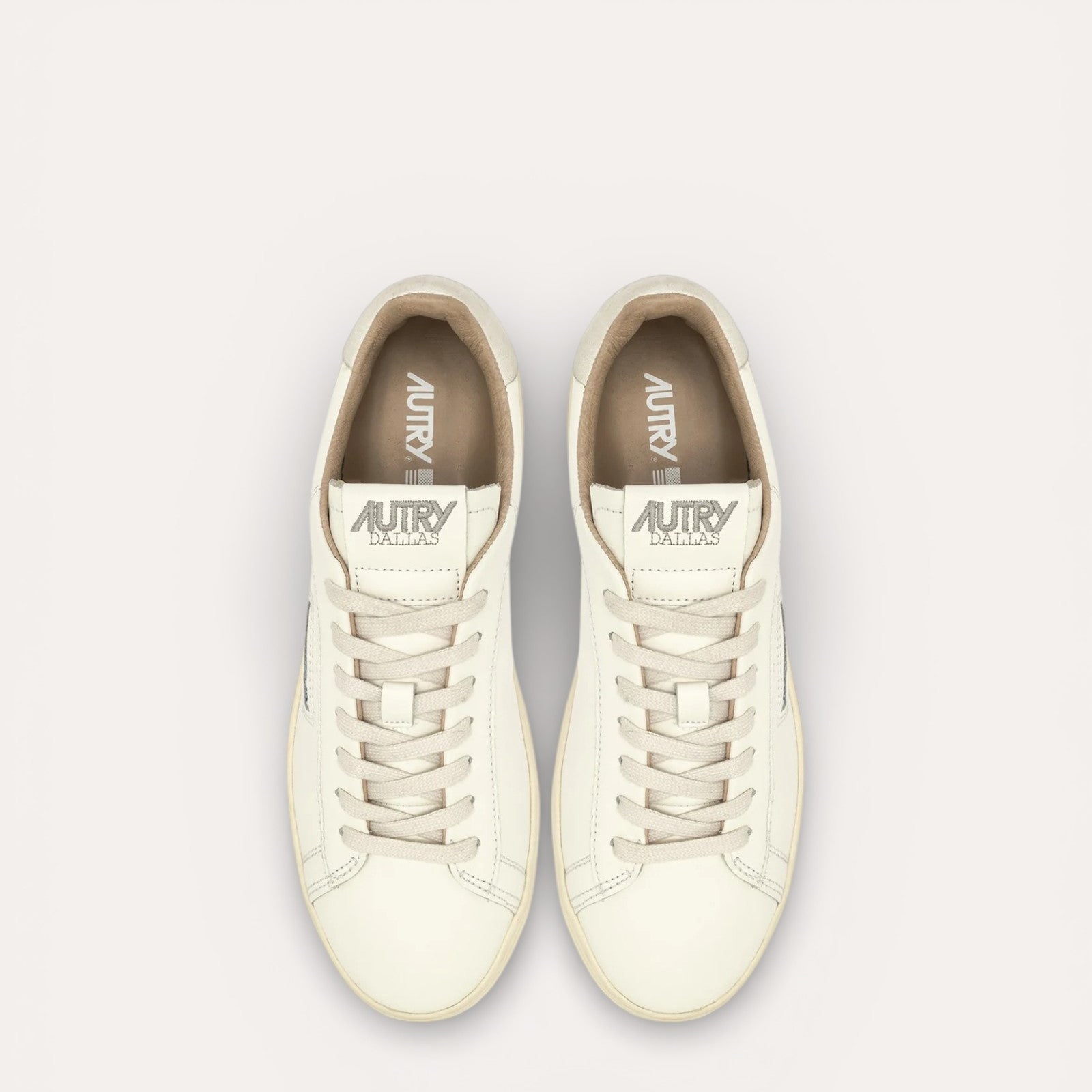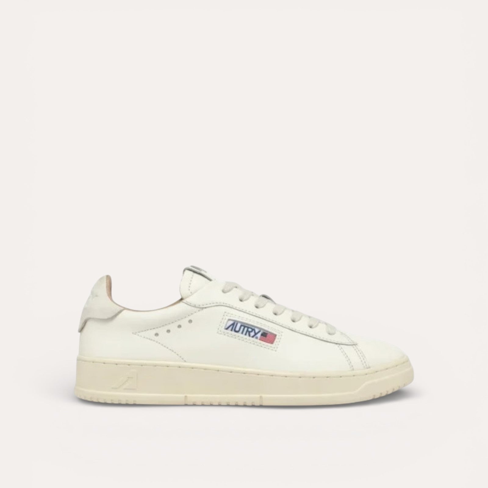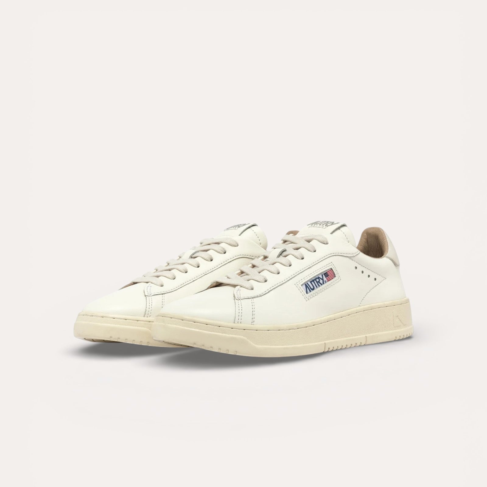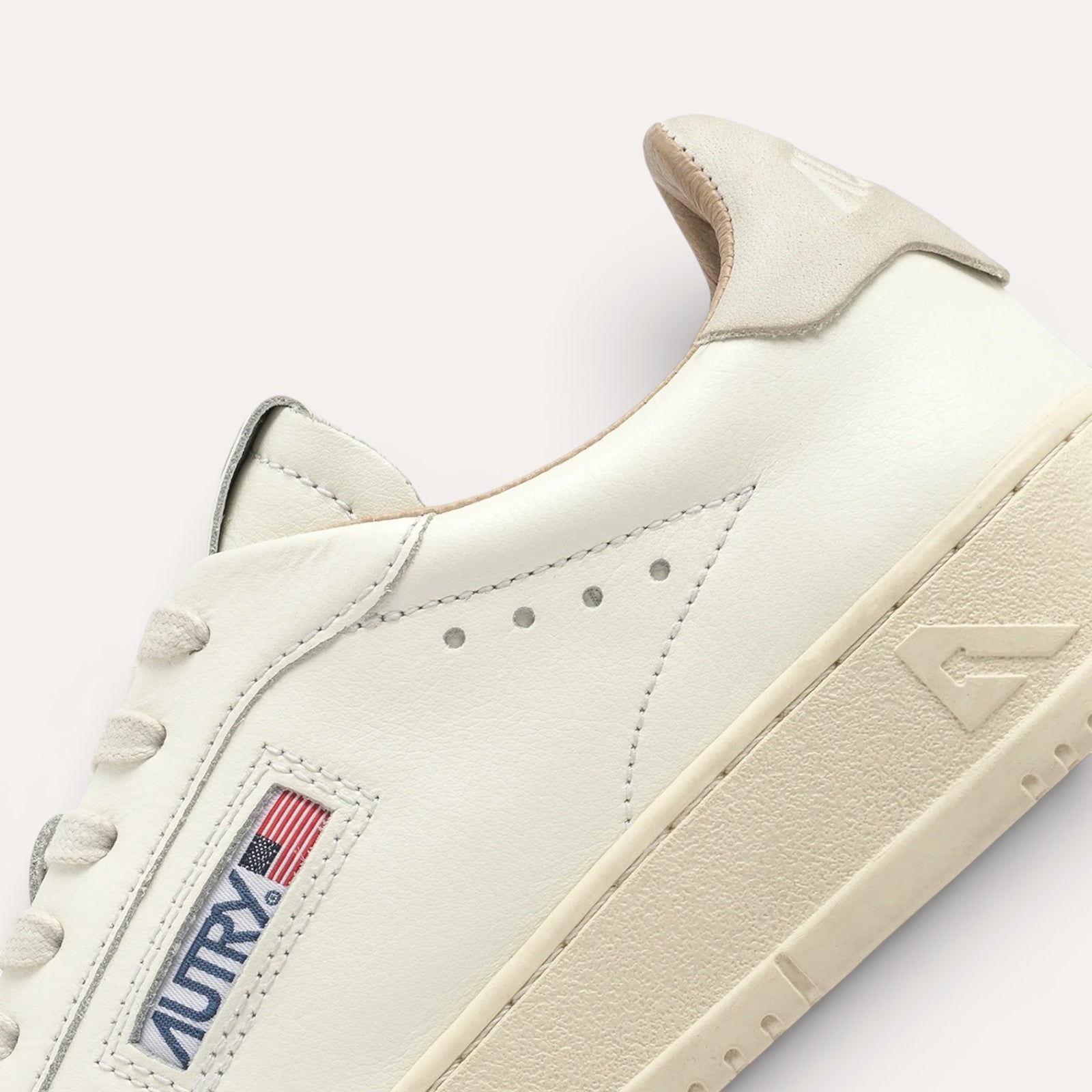 Détails Signatures Discrets : Seul le logo latéral avec le drapeau américain et le logo embossé au talon viennent ponctuer le design, affirmant l'identité Autry avec sobriété.