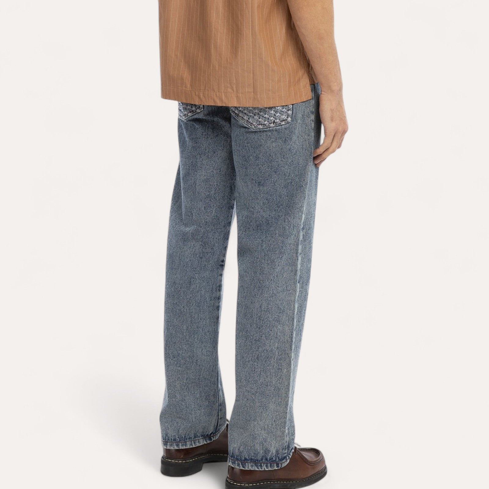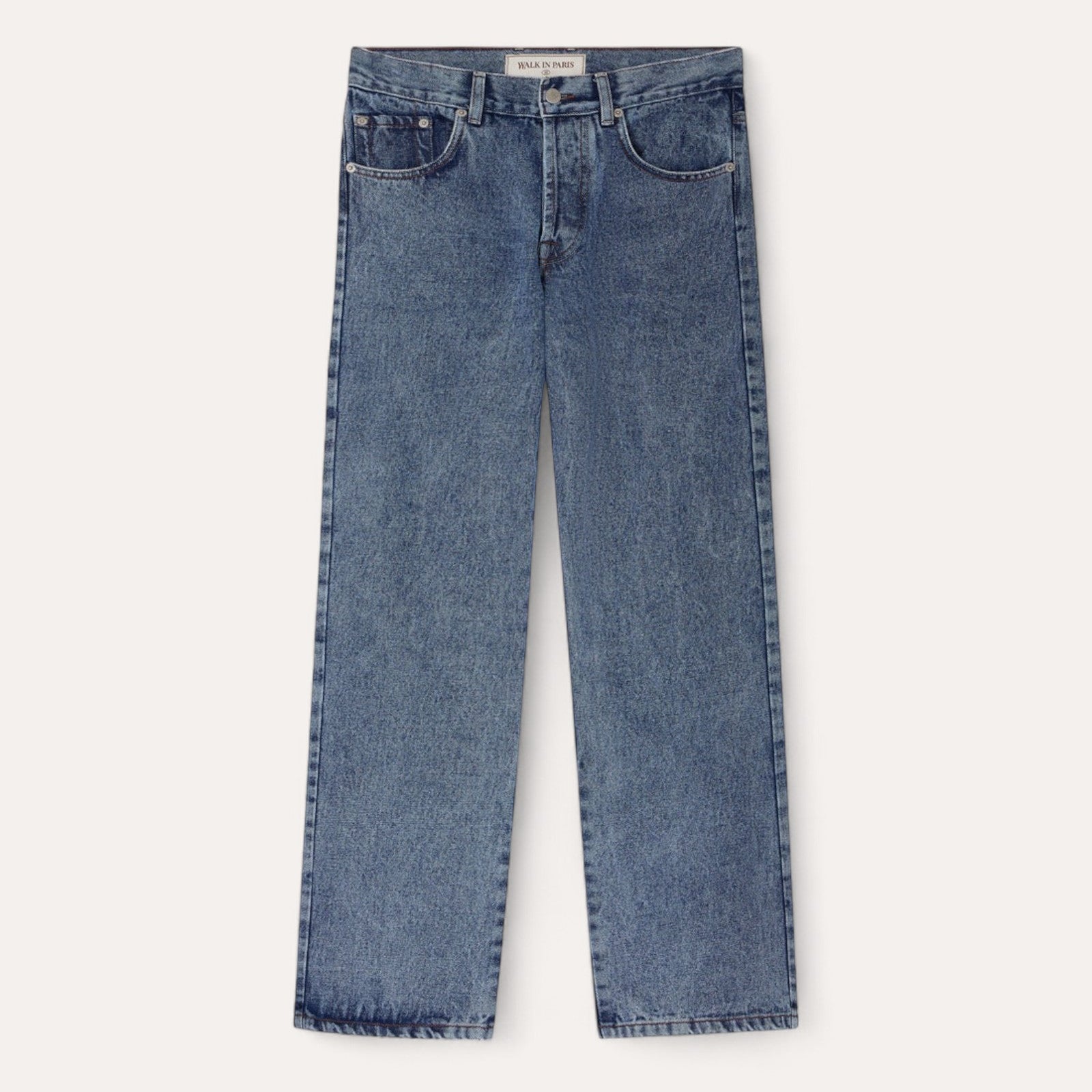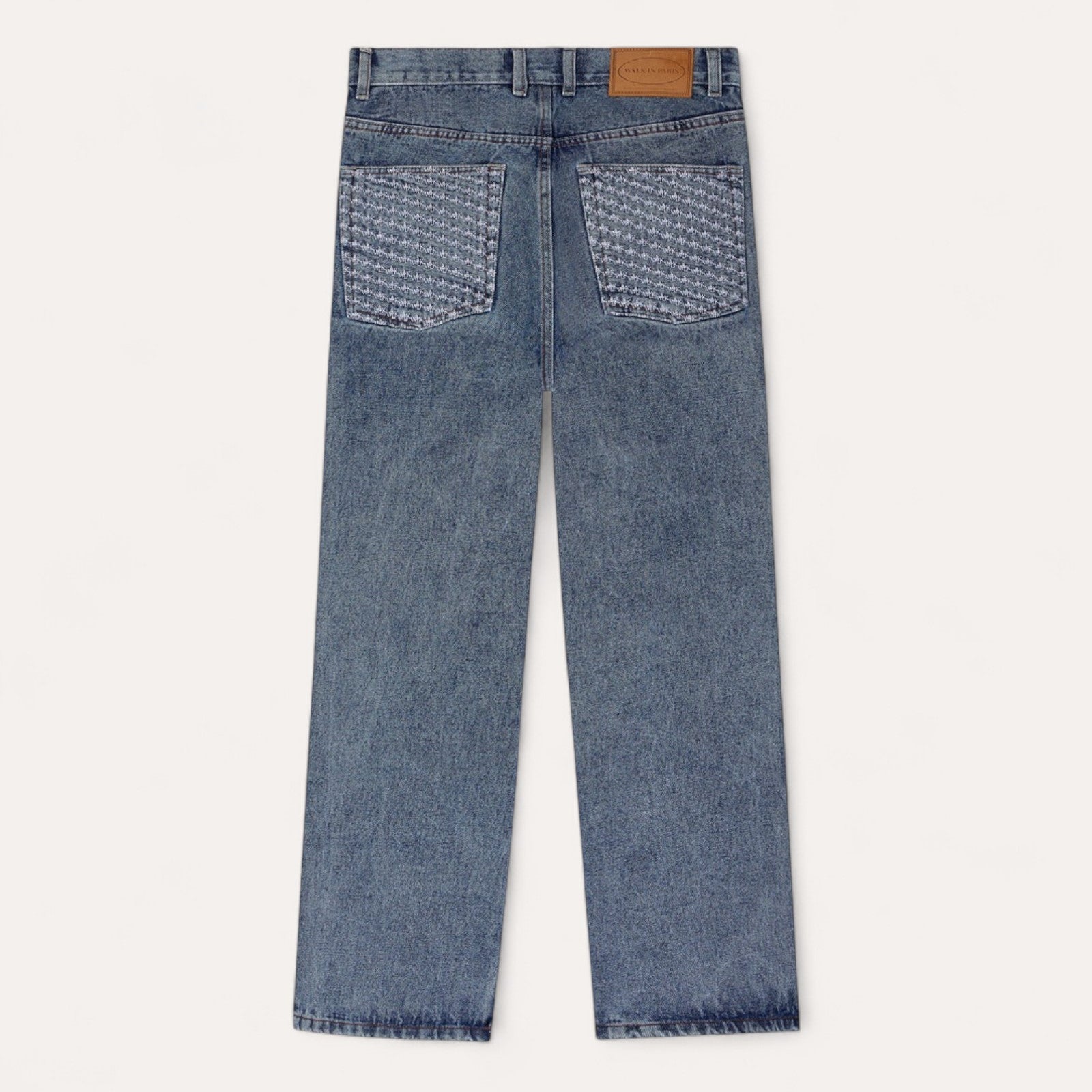 Le jean regular azur Walk in Paris arbore des broderies all over du logo WALK sur les poches arrières. Sa taille mi-haute et sa coupe droite convient aux hommes et aux femmes.