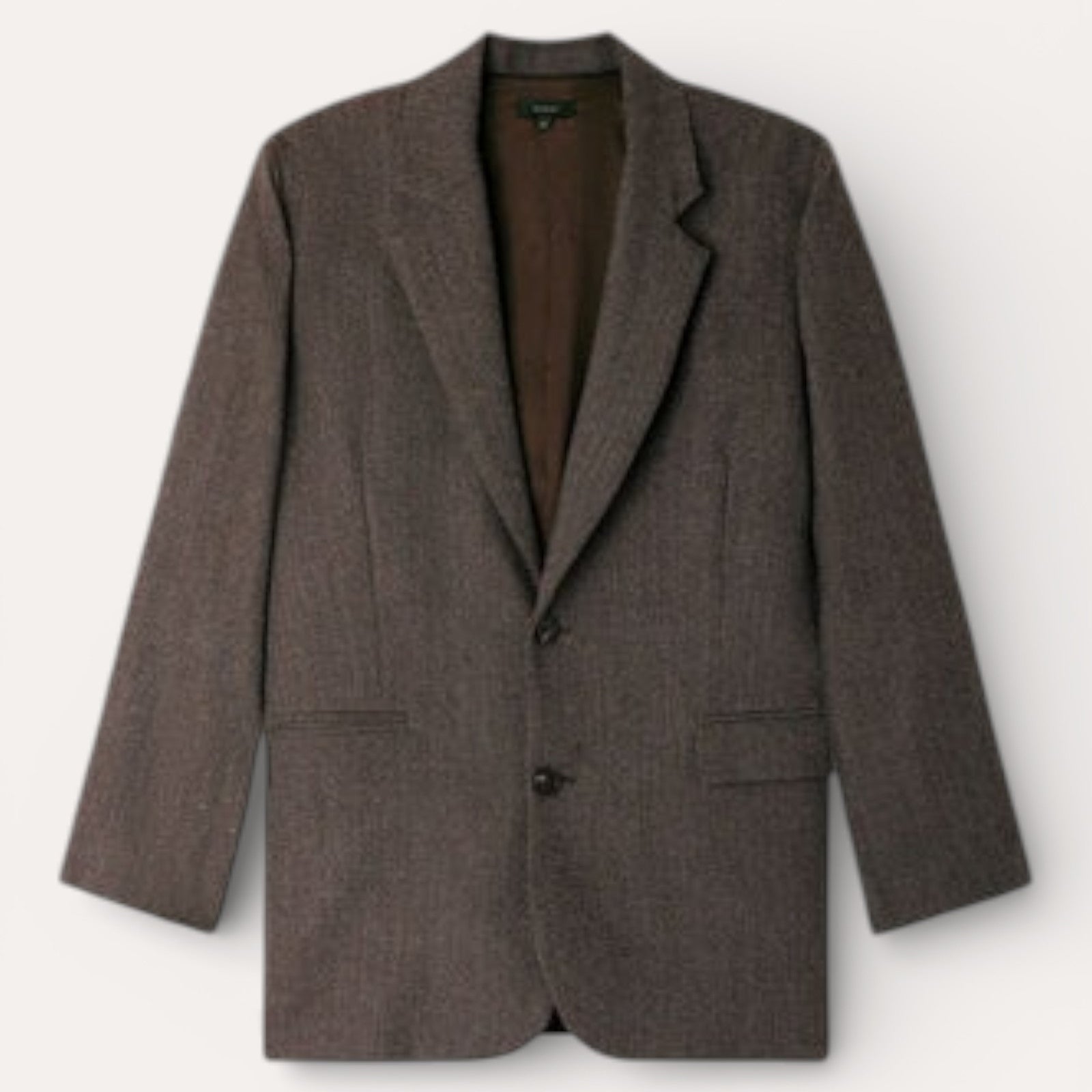 Volumes Affirmés : Avec son volume droit et son épaulé structuré, cette veste redéfinit la silhouette classique du tailleur pour une allure moderne et décontractée.