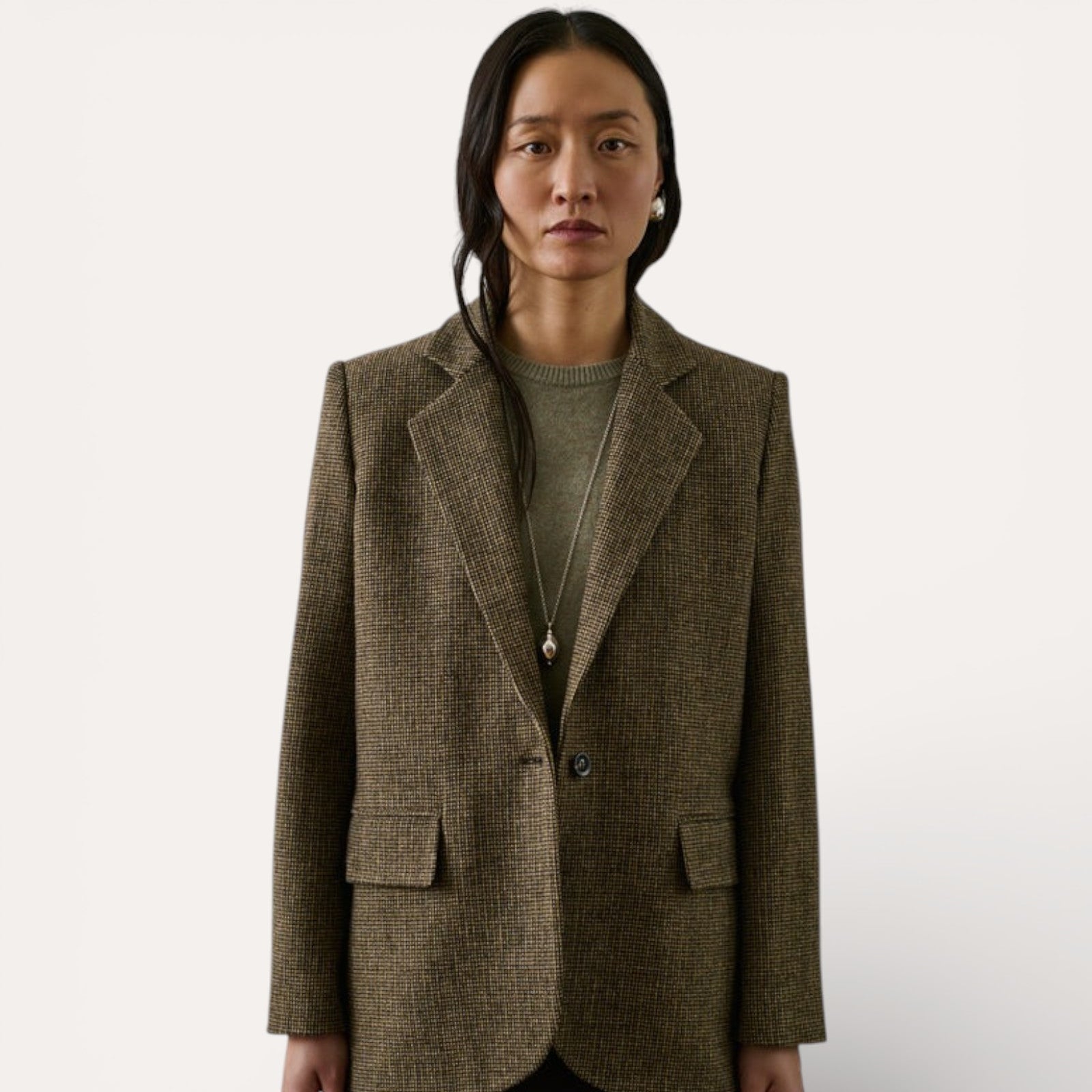 • Architecture Classique : Sa croisure simple à un bouton et son col tailleur structurent la silhouette avec finesse, offrant une allure à la fois professionnelle et décontractée.