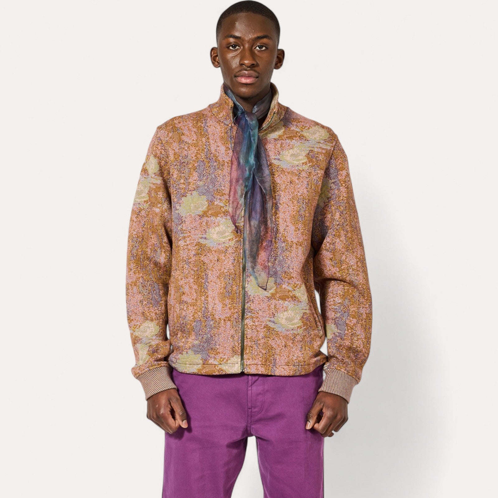 La veste (ou Sweat Zippé) Homecore Malo en jacquard Nymphéas incarne l’équilibre parfait entre élégance contemporaine et poésie artistique.