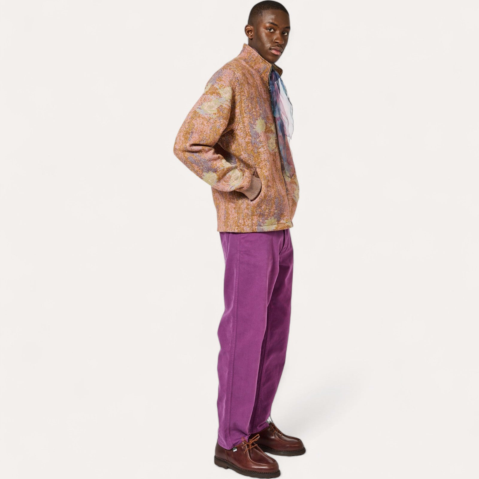 L'Art au Quotidien : La veste Malo traduit cette vision contemplative et abstraite à travers son tissage texturé et immersif. C'est une pièce forte qui invite à la réflexion et à l'élégance.