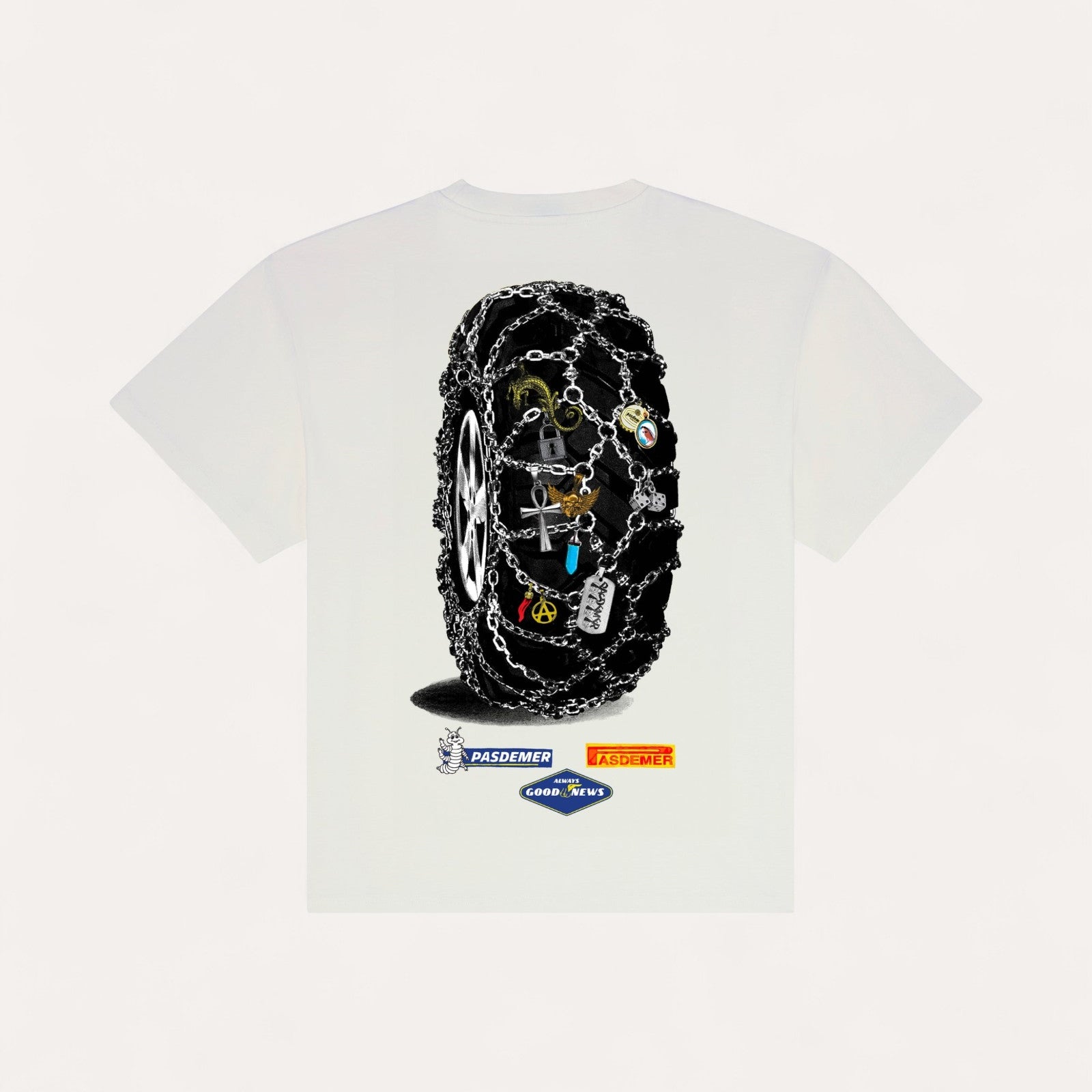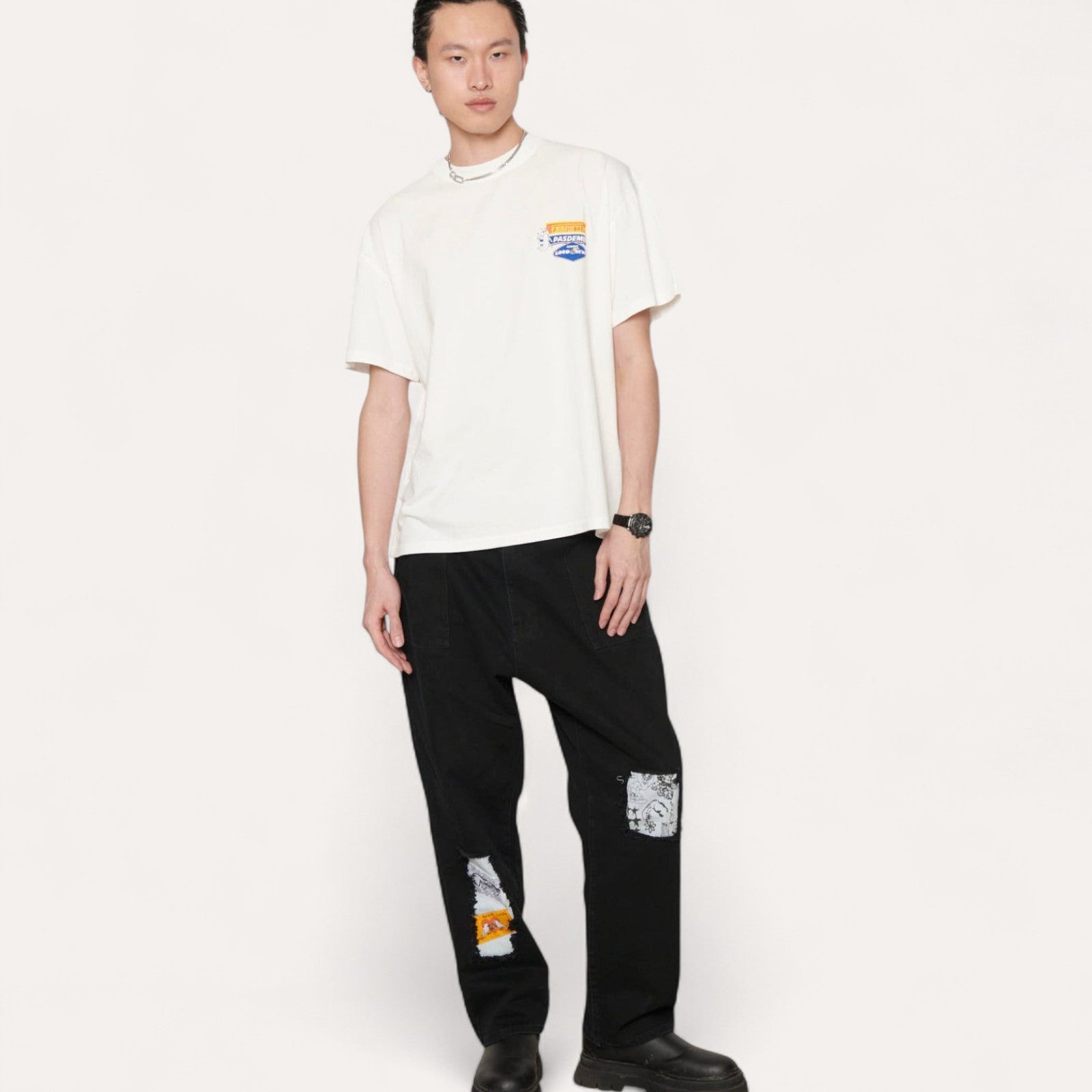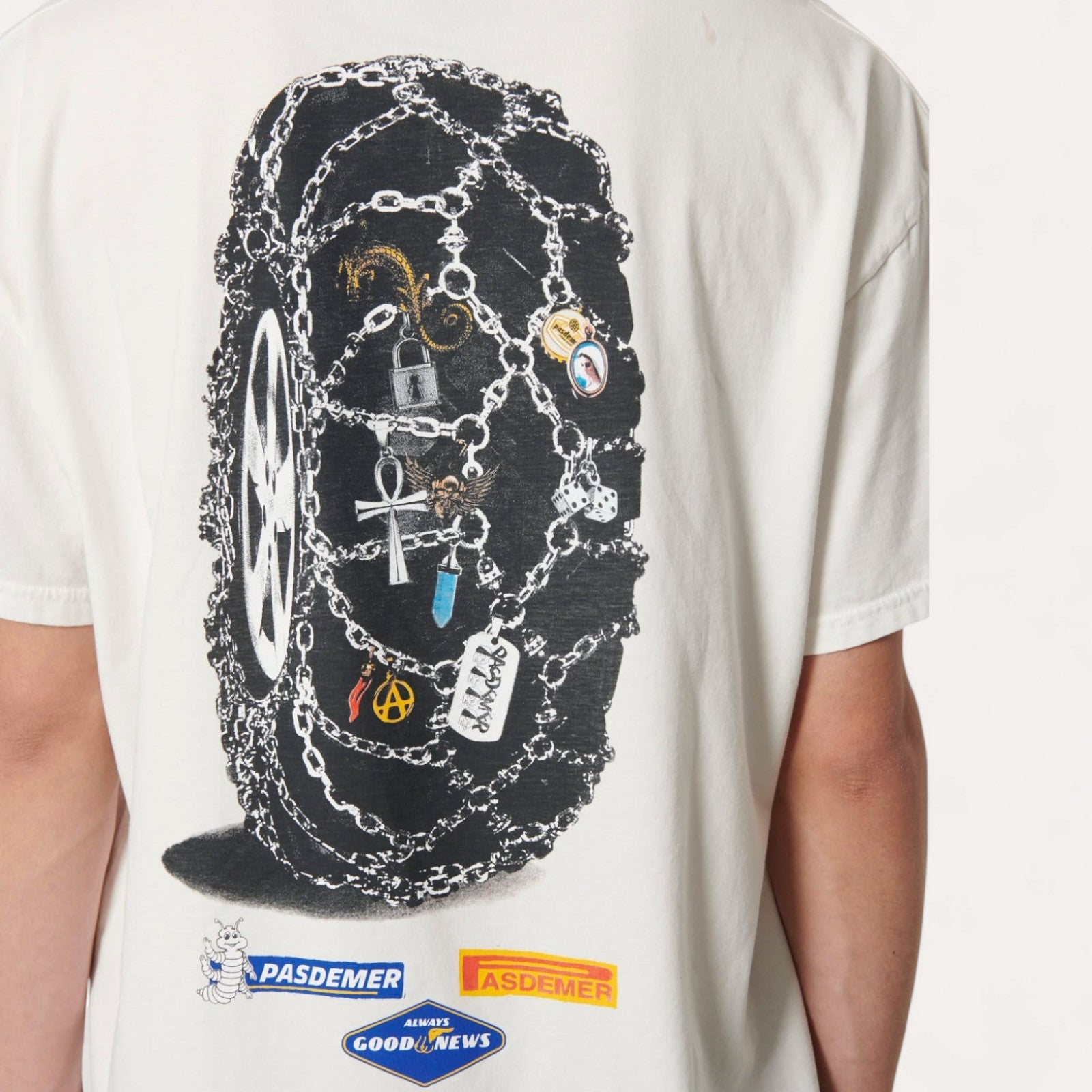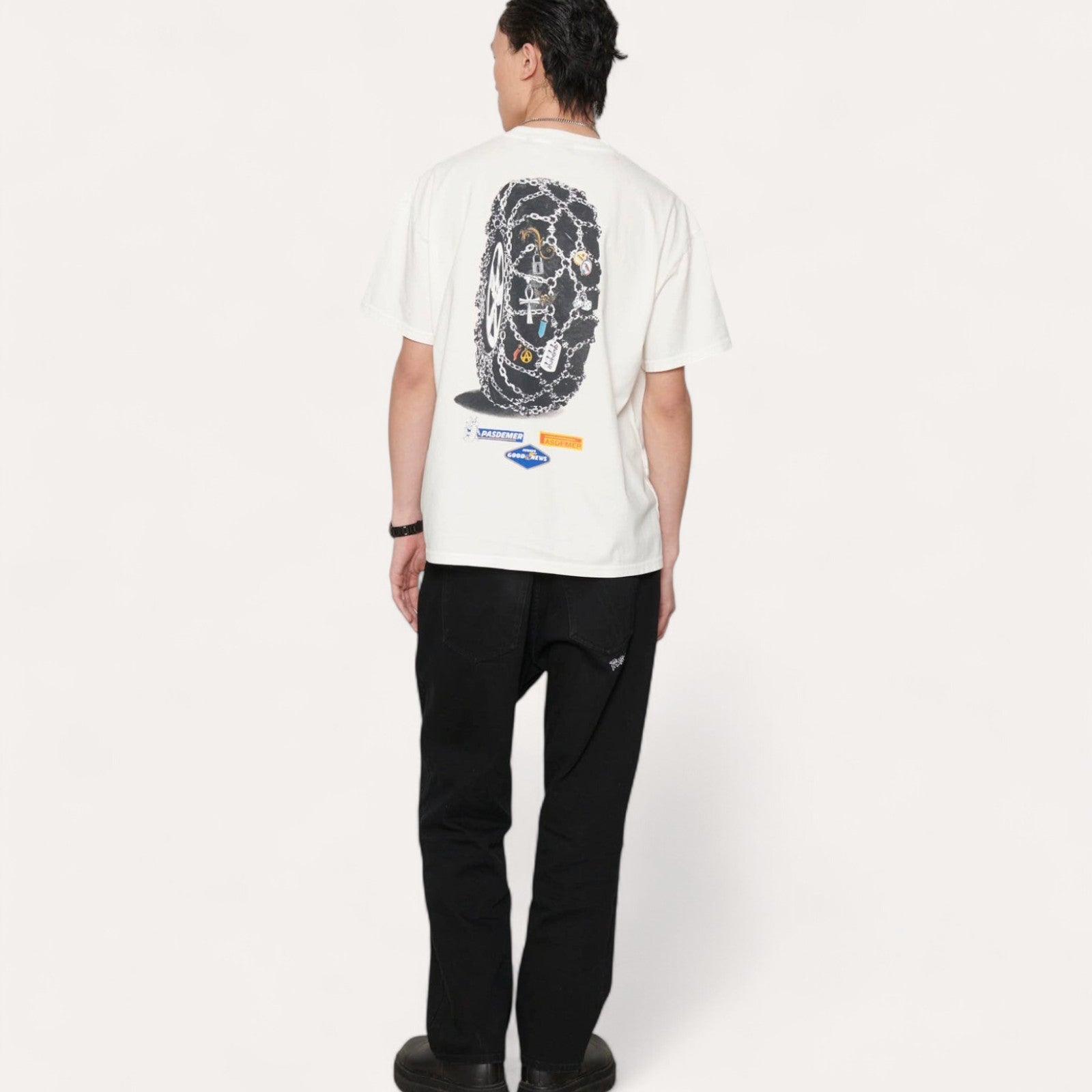 Ce T-shirt Blanc Pas de Mer est rehaussé d'un imprimé à l'avant et à l'arrière avec un effet usé et lavé, inspiré du style vintage, pour un look plus travaillé.