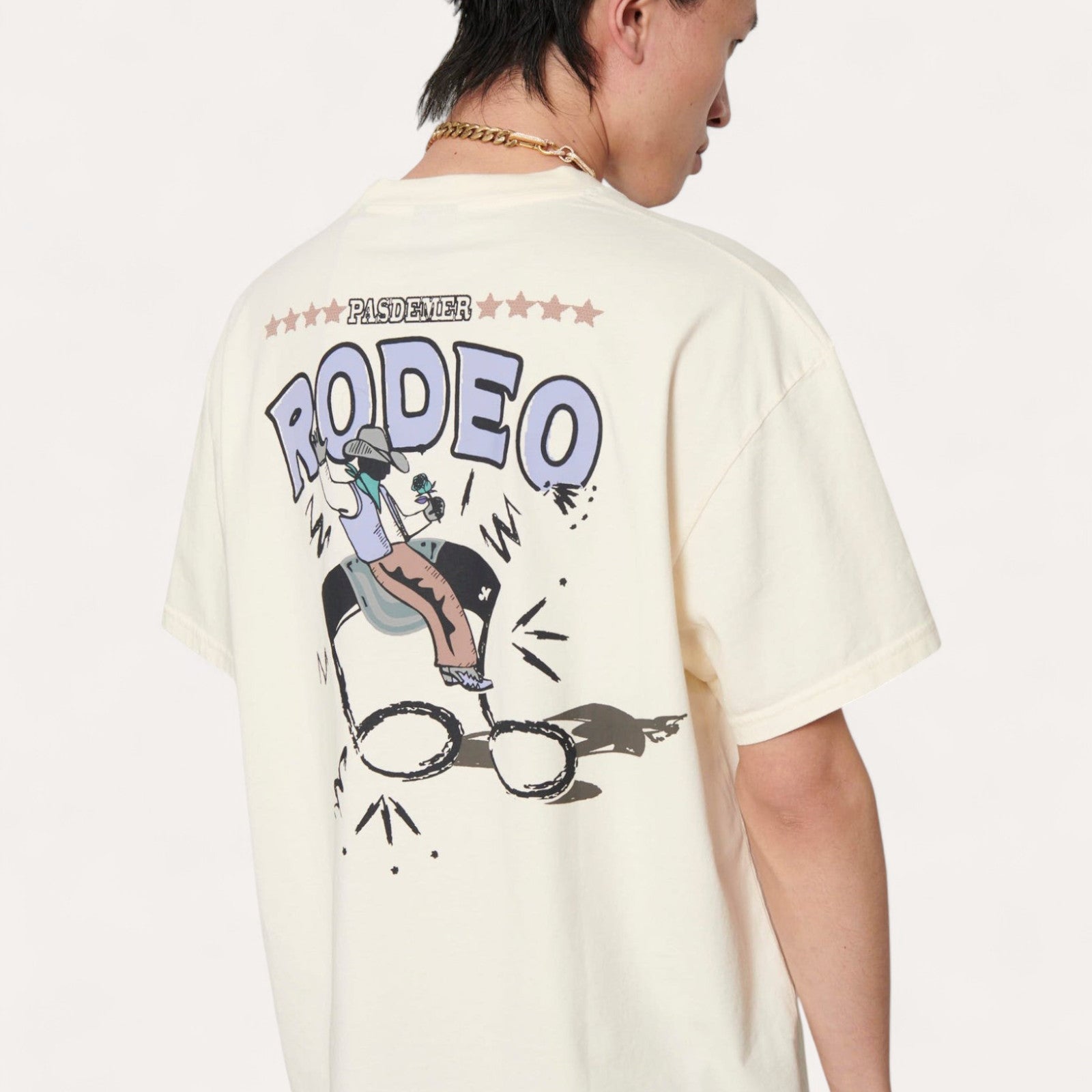 Ce modèle Crème est rehaussé d'imprimés pigmentaires sur le devant et le dos, dévoilant un artwork Pas de Mer audacieux inspiré du Rodeo. Ce graphisme apporte une attitude streetwear forte et un esprit décalé.