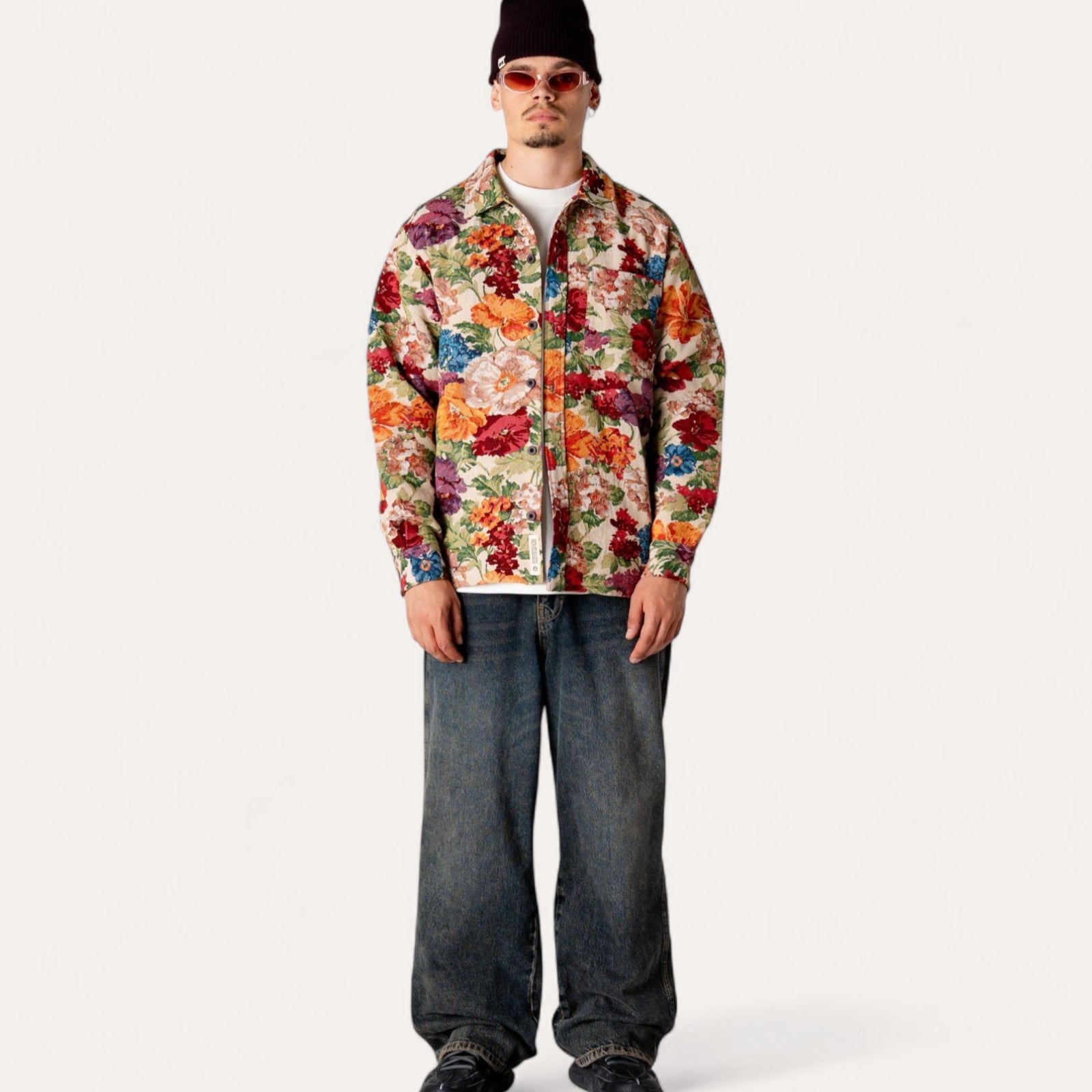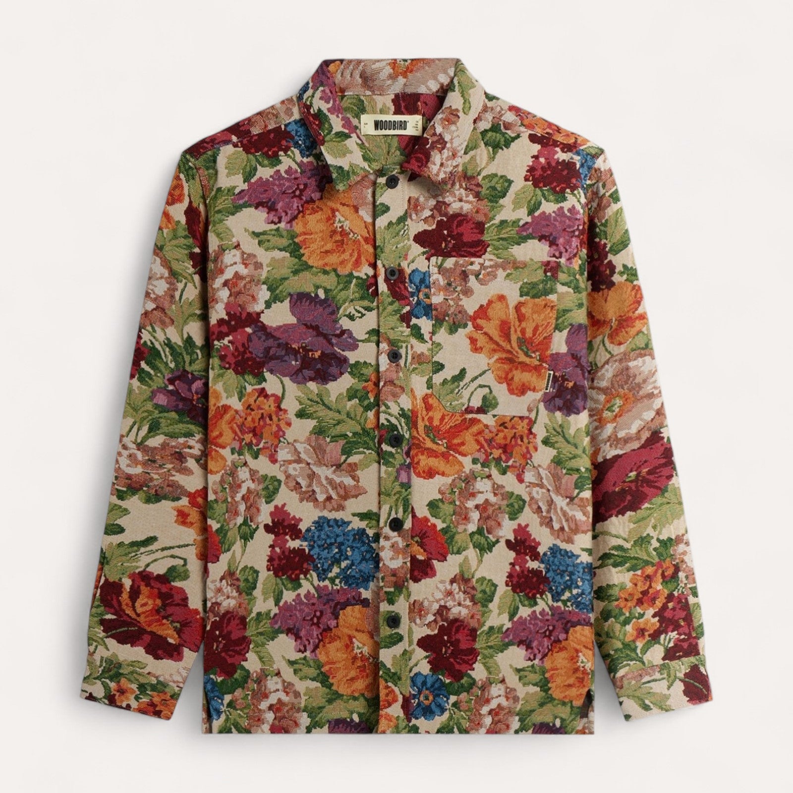 Faites entrer un jardin botanique complet dans votre dressing avec cette chemise à fleurs audacieuse Woodbird. Son motif floral dense, dans un style tapisserie, lui confère une texture riche et un charme vintage irrésistible. Une pièce forte, à la fois osée et élégante, impossible à ignorer.
