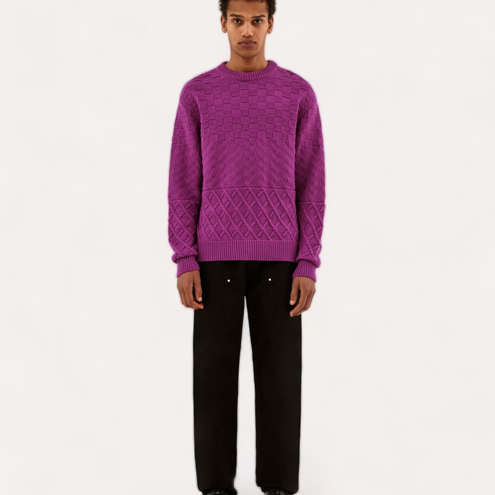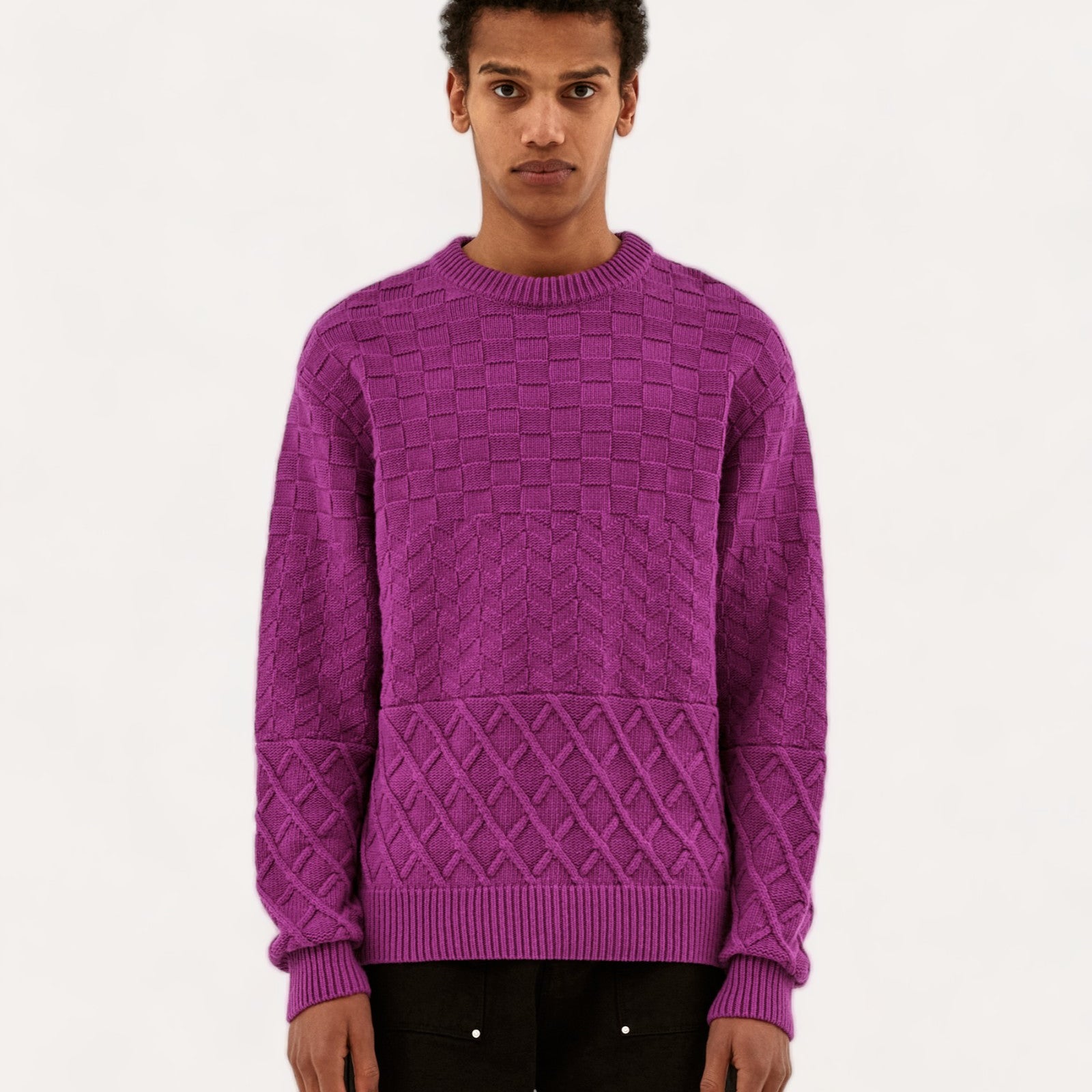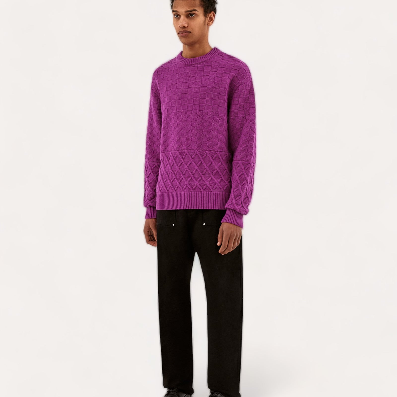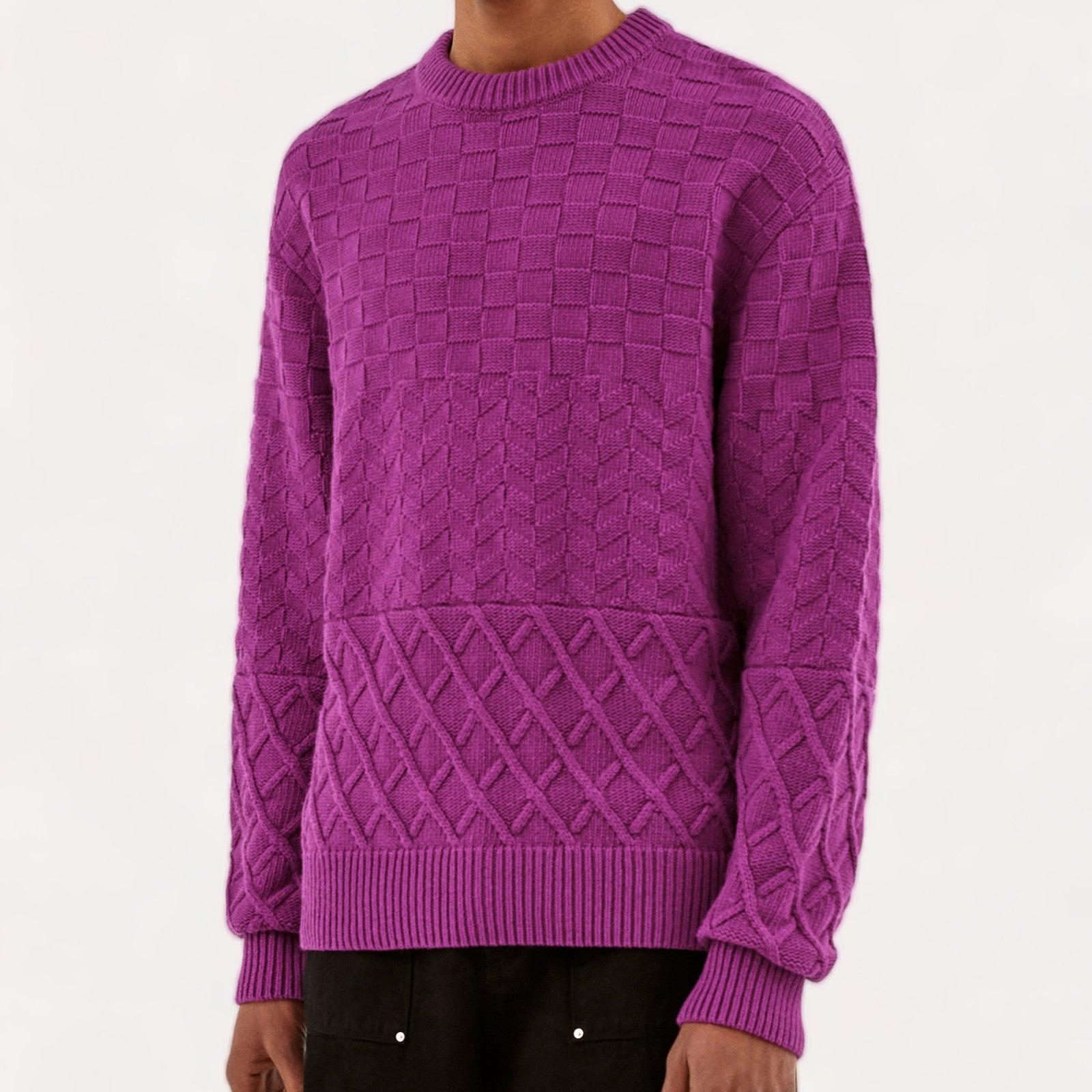 Stay warm with the Kurt sweater in pink. The sweater is designed with different types of textures, to give it a little touch of originality.